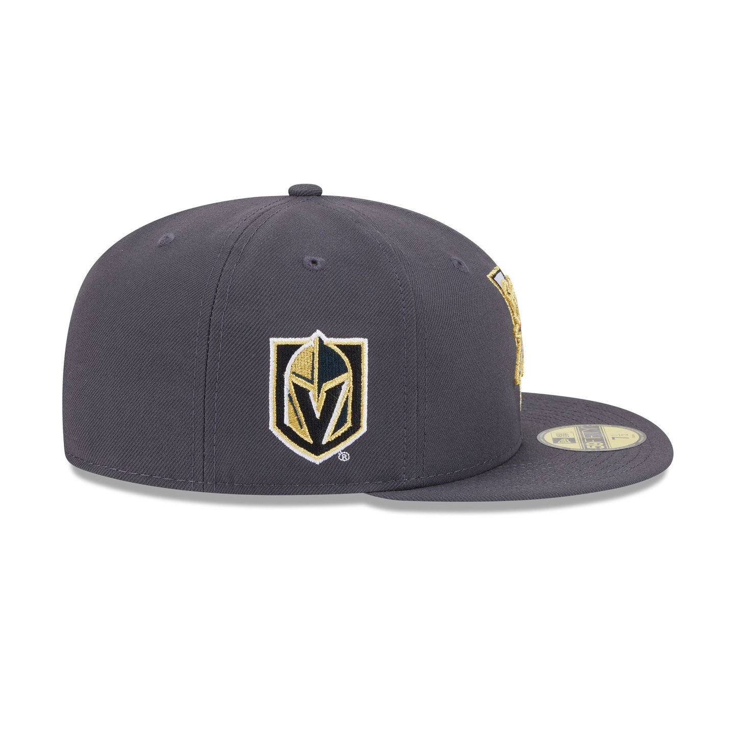 The Vegas Golden Knights Deceptor 59FIFTY Fitted Cap features an embroidered Golden Knights deceptive logo at the front panels with a team logo at the right-wear side. Additional details include a wordmark at the rear, and a gray undervisor.