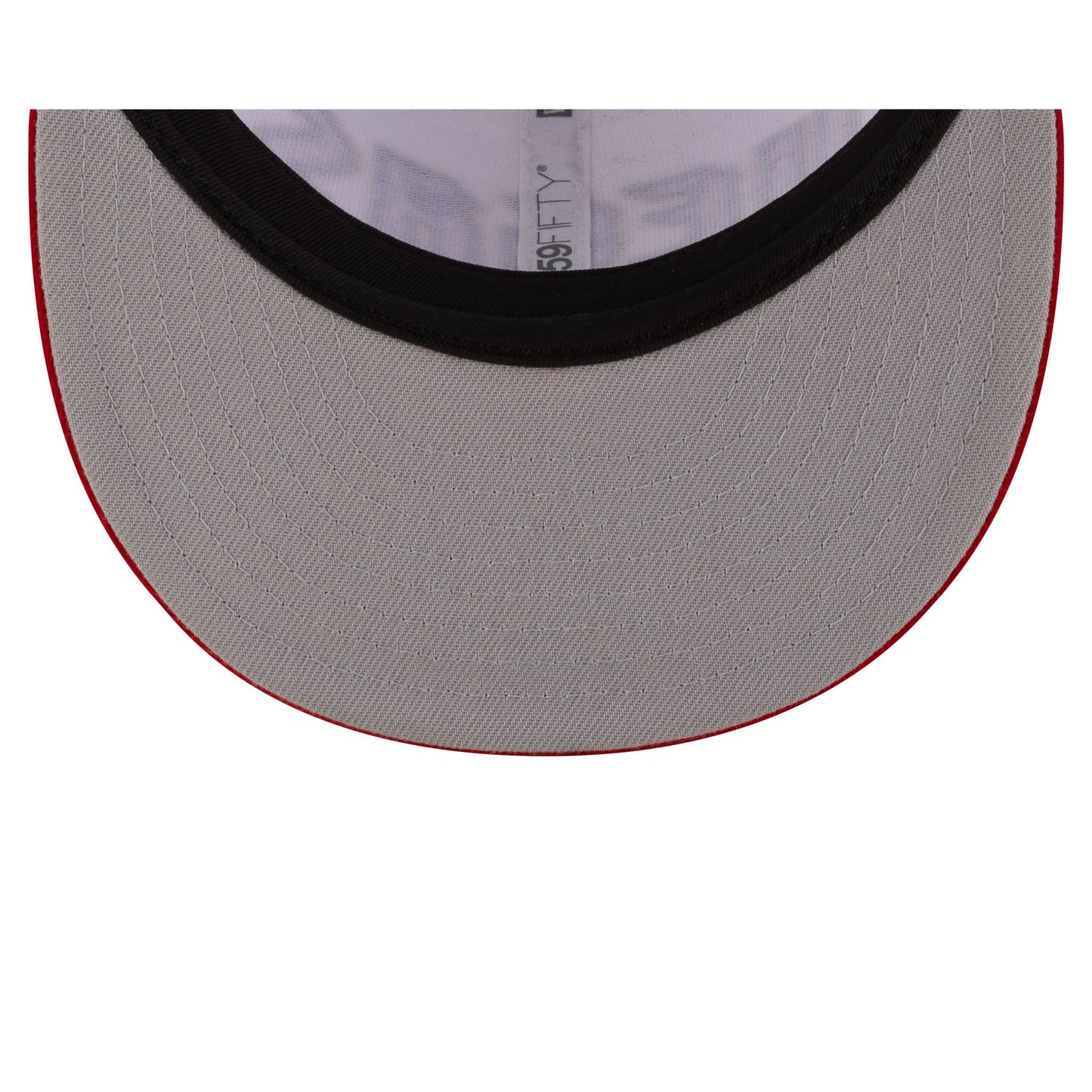 The Vegas Golden Knights Welcome to Vegas 59FIFTY Fitted Cap features an embroidered Golden Knights wordmark at the front panels with a matching NHL Shield at the rear. Additional details include a Welcome to Las Vegas, Nevada patch at the right-wear side with a red visor and a gray undervisor.