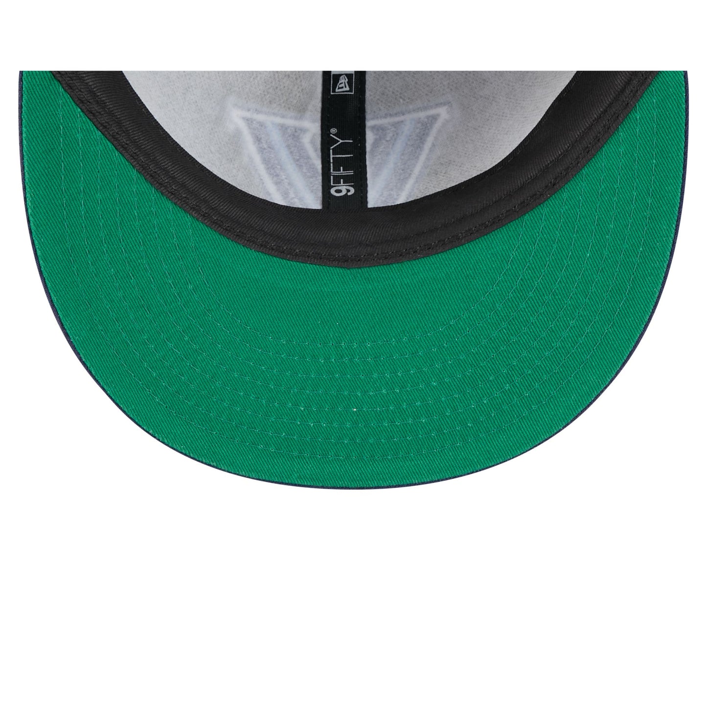 The Villanova Wildcats Tournament Side Patch Retro Crown 9FIFTY Strapback features an embroidered Wildcats logo at the front panels with a 1985 NCAA Championship patch at the right-wear side, an adjustable strapback closure at the rear, and a green undervisor.