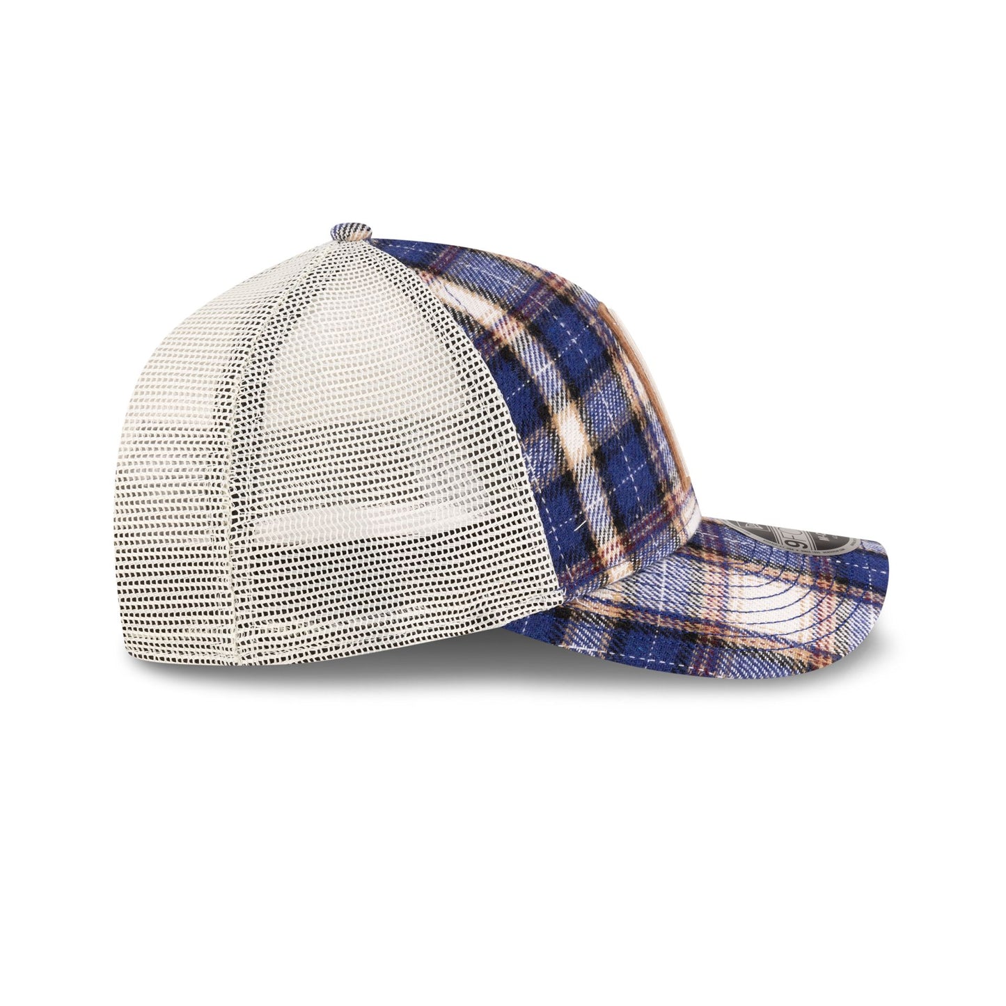 The Visa Cash App Racing Bulls 2025 Austin Race Special Isack Hadjar 9FORTY M-Crown Snapback features a woven Racing Bulls logo patch at the front panels against a plaid fabrication with a snapback closure at a mesh rear and the driver's number at the visor.