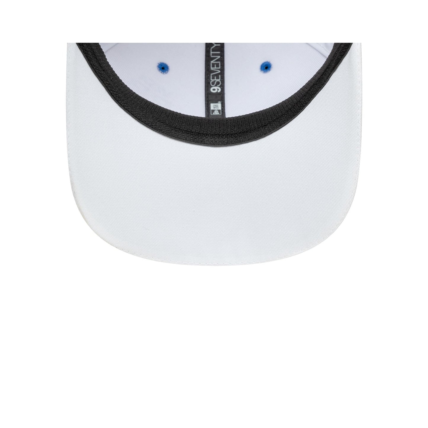 The Visa Cash App Racing Bulls White 9SEVENTY Stretch-Snap Cap features an HD-printed Racing Bulls logo at the front left panel with a screen-printed logo at the visor and an adjustable snapback closure at the rear.