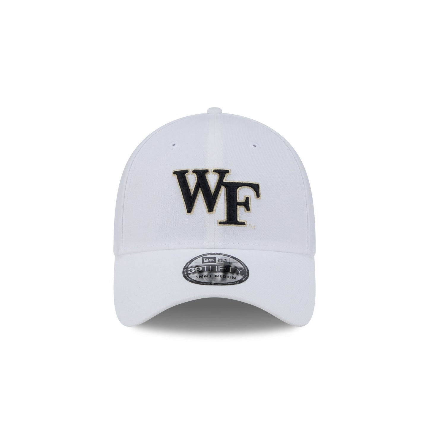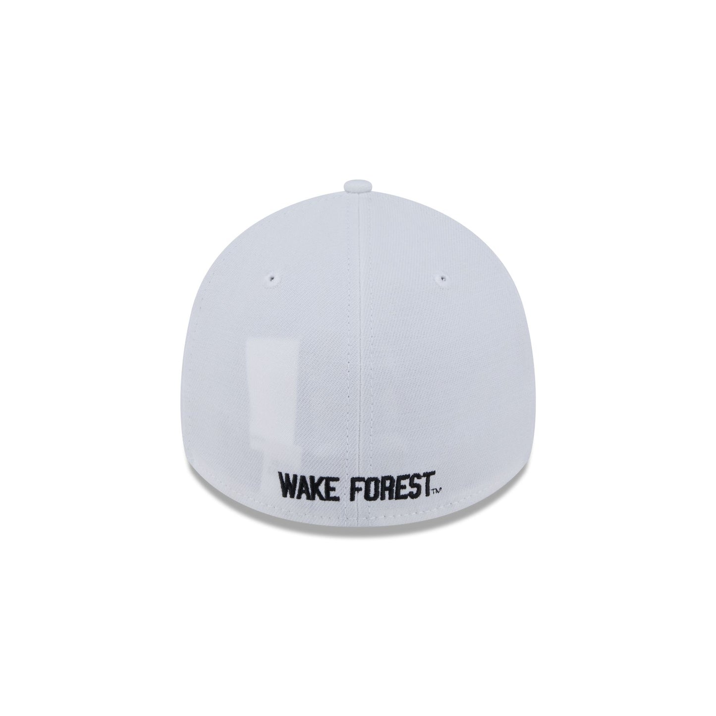 The Wake Forest Demon Deacons Optic White 39THIRTY Stretch Fit features an embroidered Demon Deacons logo at the front panels with a team wordmark at the rear.