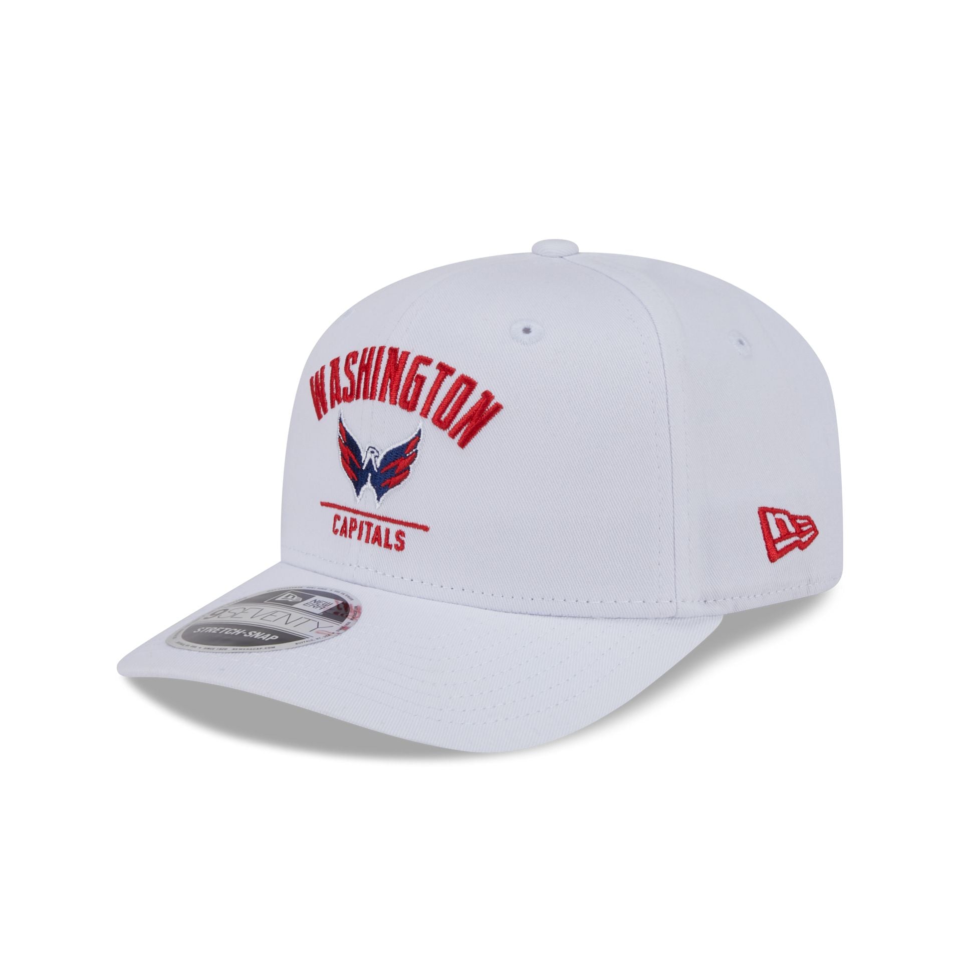 The Washington Capitals Alex Ovechkin Goals Leader White 9SEVENTY Stretch-Snap Cap features an embroidered Capitals logo at the front panels with 895 NHL All-Time Goals Leader Alex Ovechkin patch at the right-wear side and a snapback closure at the rear.
