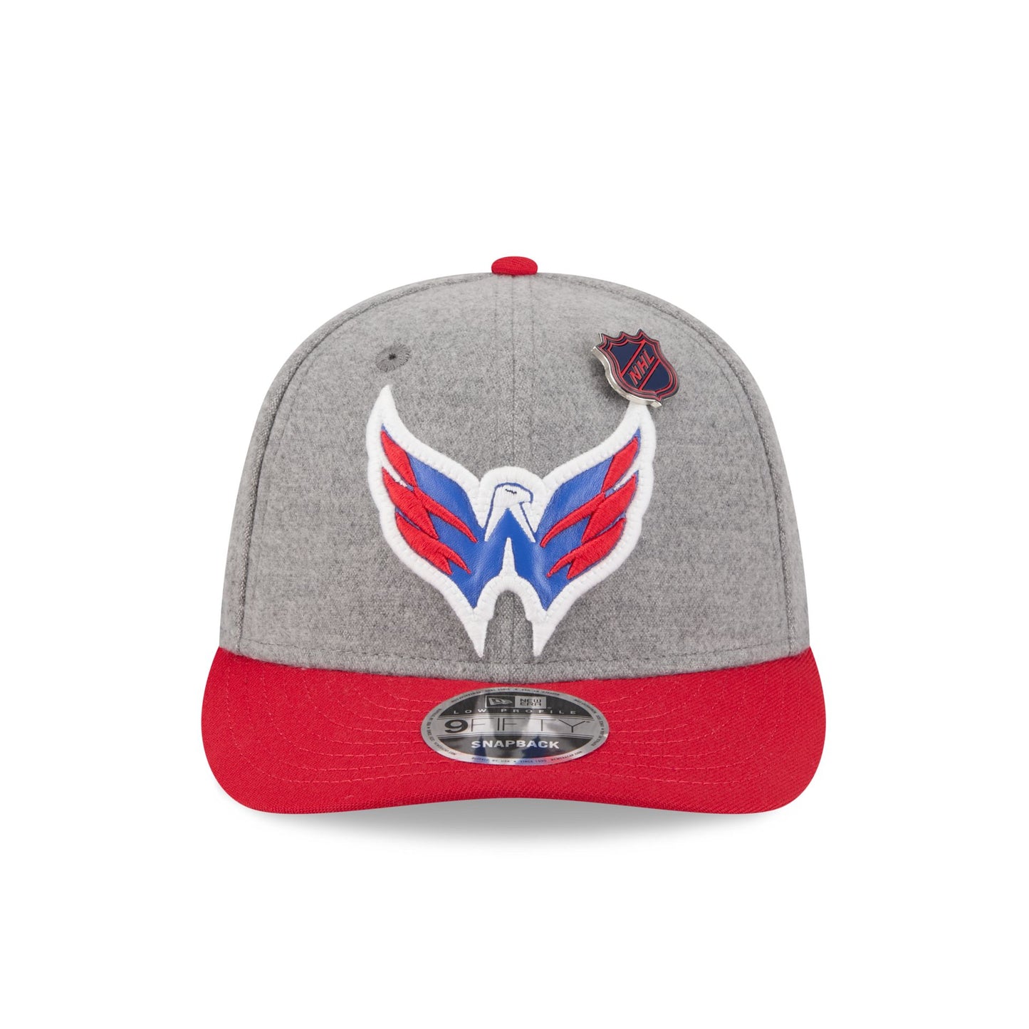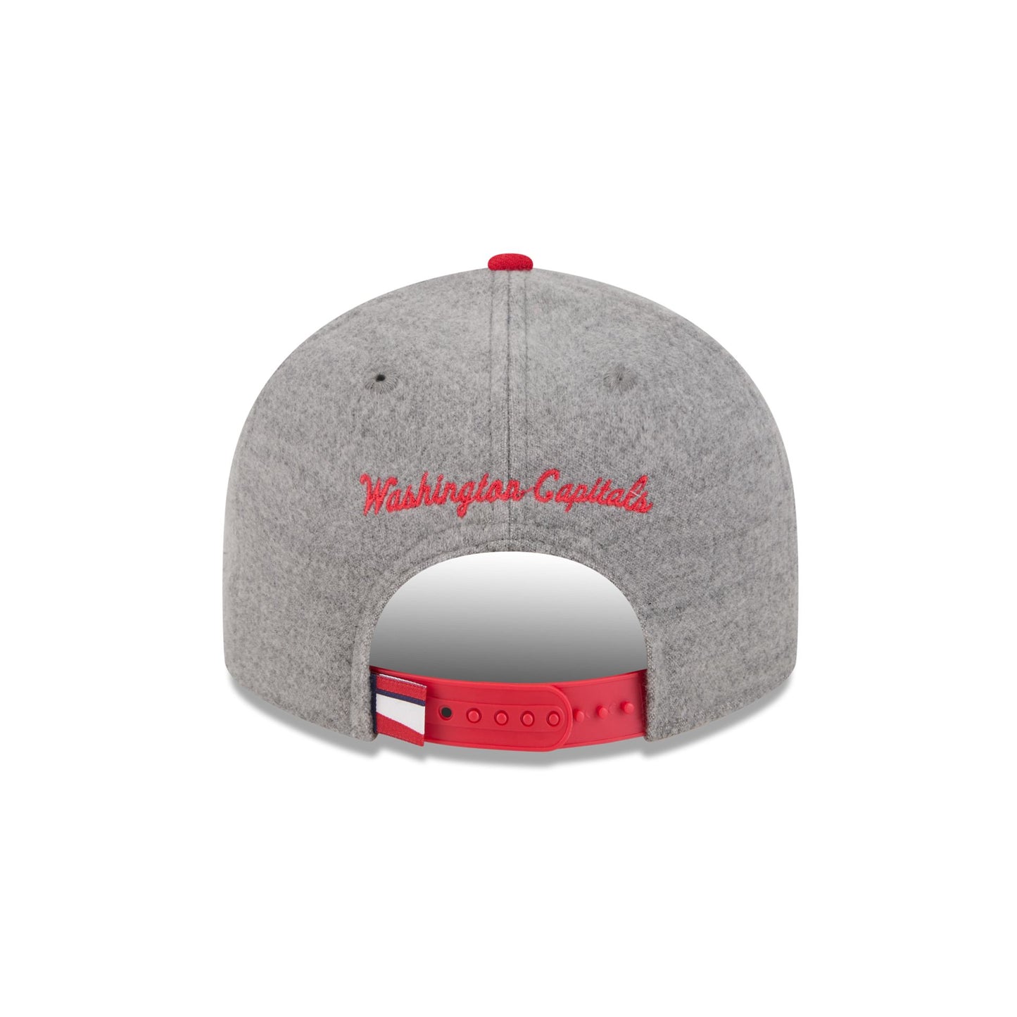 The Washington Capitals Heather Gray Wool Low Profile 9FIFTY snapback features a faux leather applique Capitals logo at the front panels against a wool fabrication throughout the cap. Additional details include a conference patch at the right-wear side, an NHL pin at the front, and a script wordmark above an adjustable snapback closure at the rear.