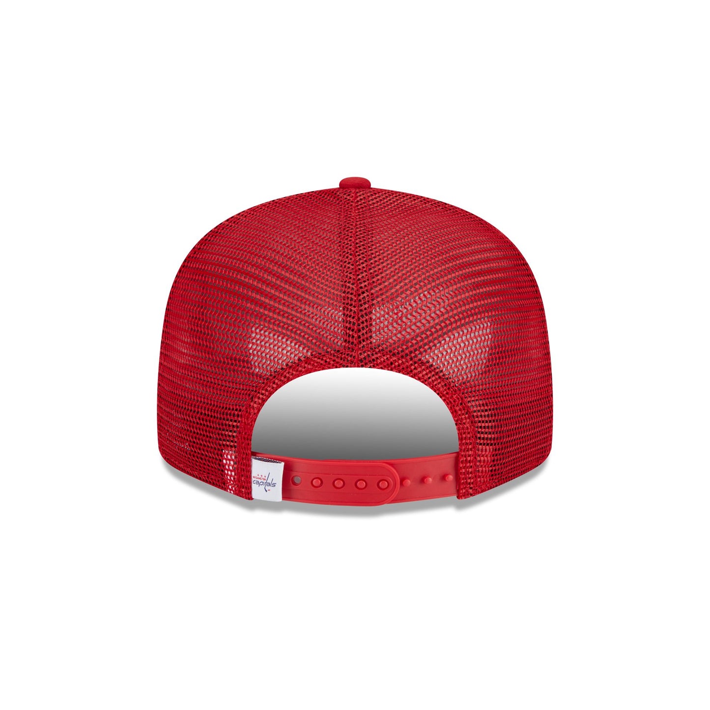The Washington Capitals Team Tag 9FIFTY Trucker features an embroidered Capitals logo at the front panels with a team tag on an snapback closure at a mesh rear and a gray undervisor.