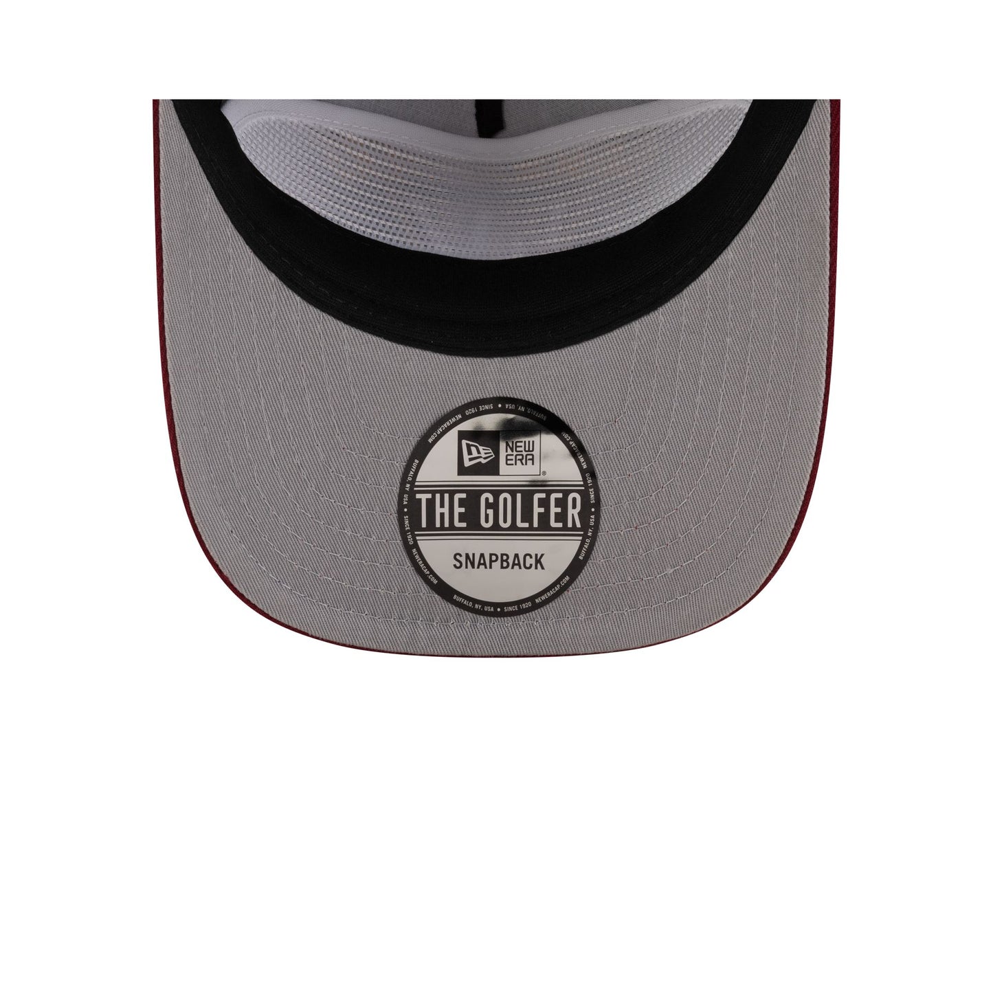 The Washington Commanders 2025 Draft Golfer features an embroidered Commanders logo and wordmark at the front panels with an NFL Shield logo above a snapback closure at the rear. Additional details include ornamental stitched details at the visor and a gray undervisor.