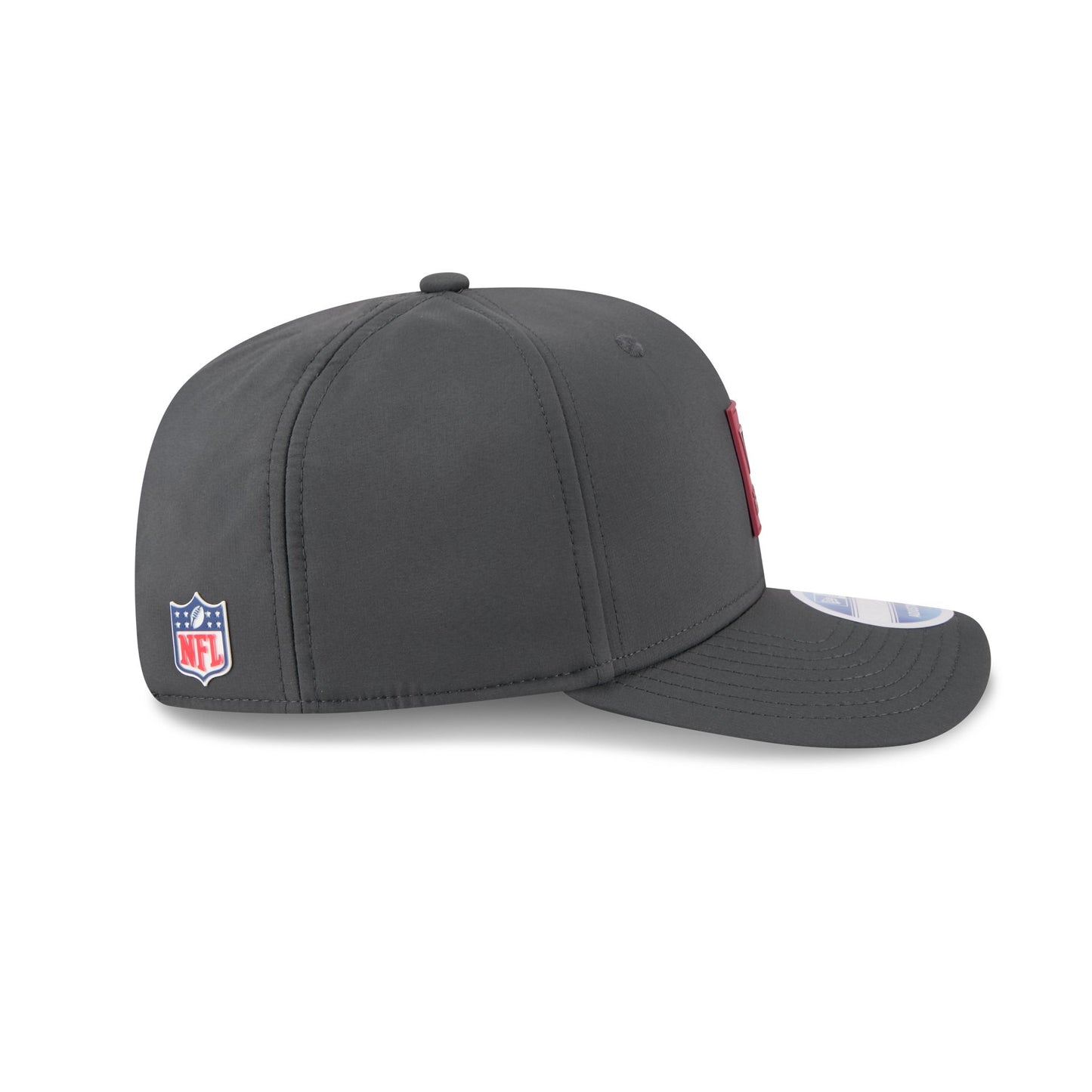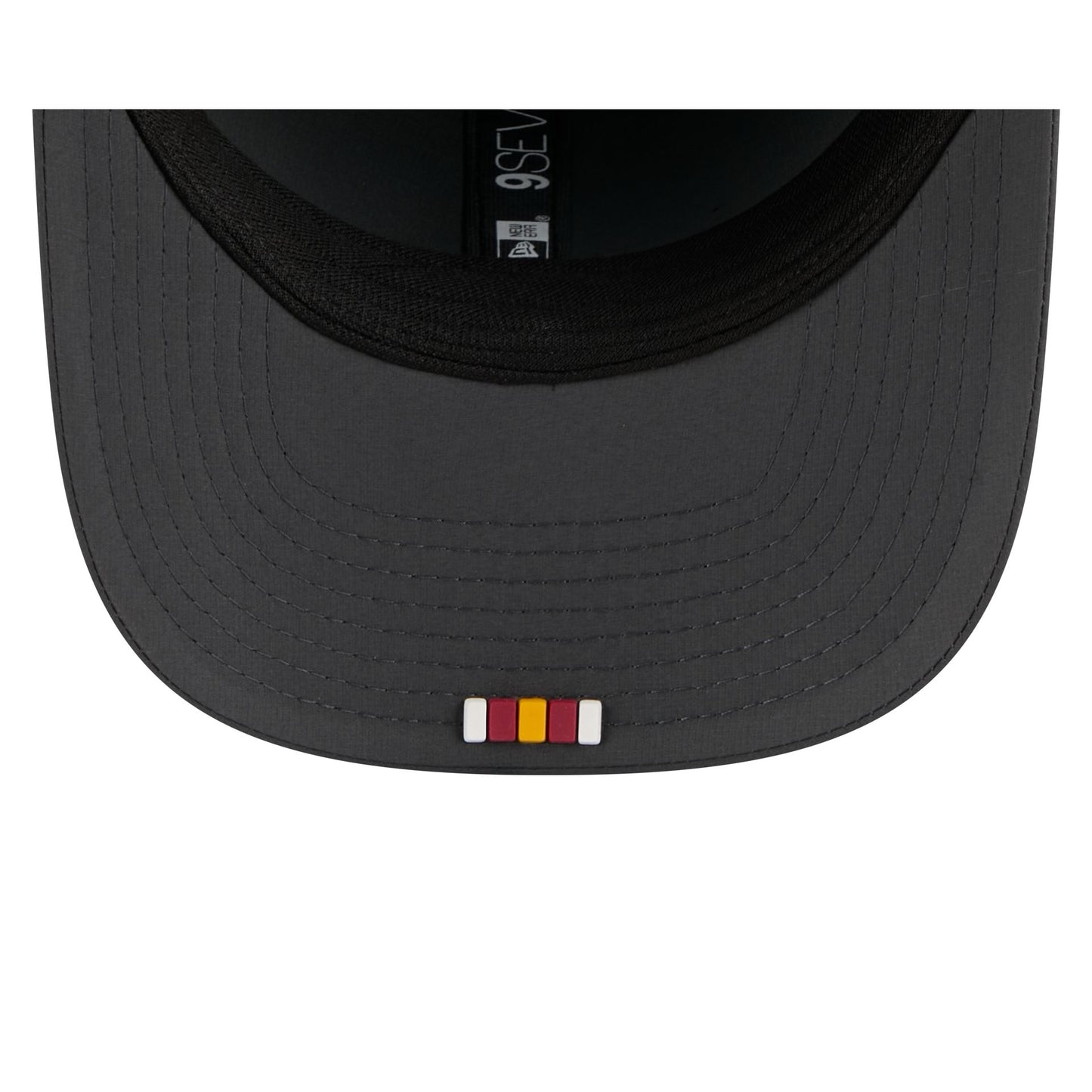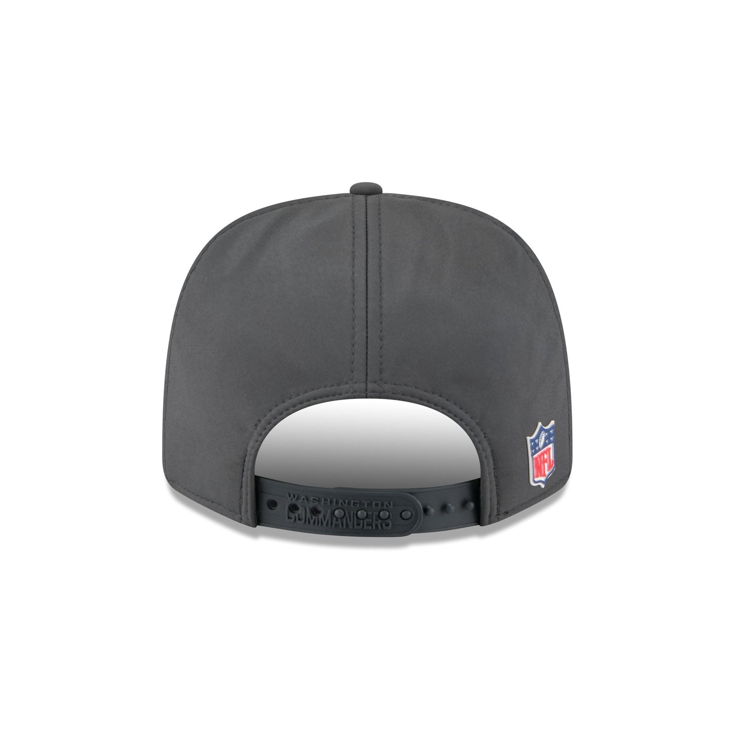 The Washington Commanders 2025 Sideline Cold Weather Steel Clouds 9SEVENTY Stretch-Snap features a sewn-down silicone Commanders logo patch at the front panels with a water-repellent quill tech fabrication throughout and an insulated crown with a quick-dry cushioned sweatband. Additional details include the Official NFL Shield logo to the right of a soft silicone snapback closure at the rear. The undervisor is accented with a silicone transfer in the team’s colors.