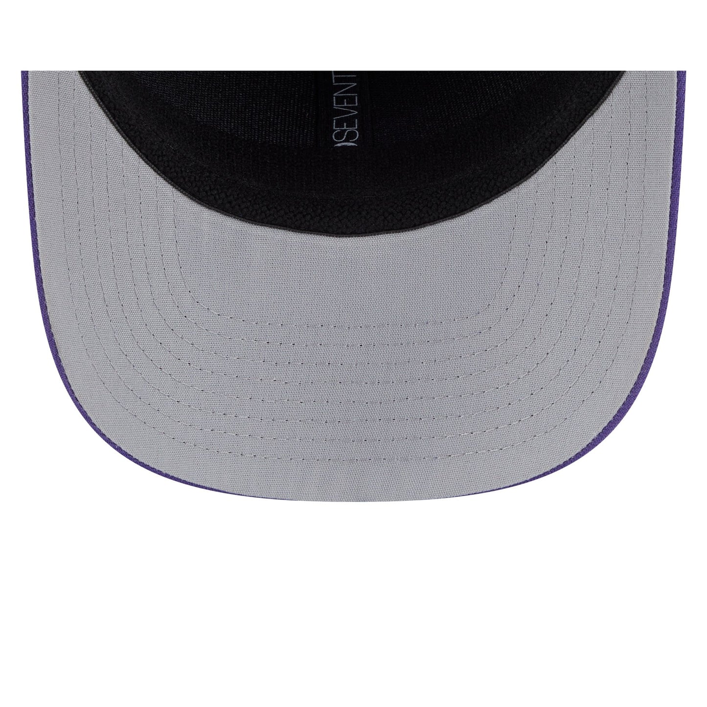 The Washington Huskies Purple Team 9SEVENTY Stretch-Snap Cap features an embroidered Huskies logo at the front panels with an alternate team logo above a snapback closure at the rear and a gray undervisor.
