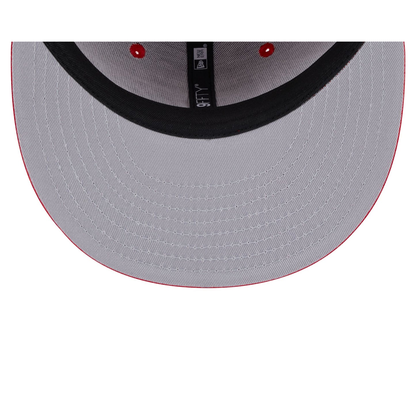 The Washington Mystics Script 9FIFTY Snapback Hat features an embroidered Mystics wordmark at the front panels with a matching team logo at the right-wear side. Additional details include and a snapback closure at the rear and a gray undervisor.