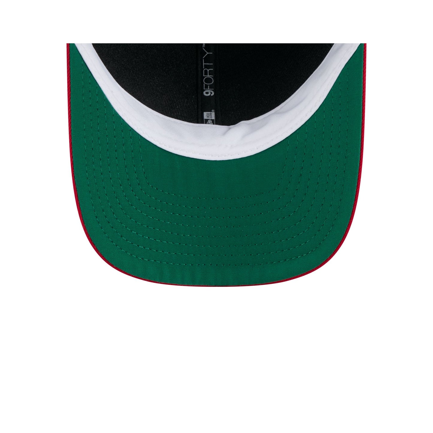 The Washington Nationals Hall of Fame 2025 9FORTY M-Crown Snapback features an embroidered Nationals Cooperstown logo at the front panels with a matching MLB Batterman logo above a snapback closure at the rear, a National Baseball Hall of Fame patch at the right-wear side, and a green undervisor.