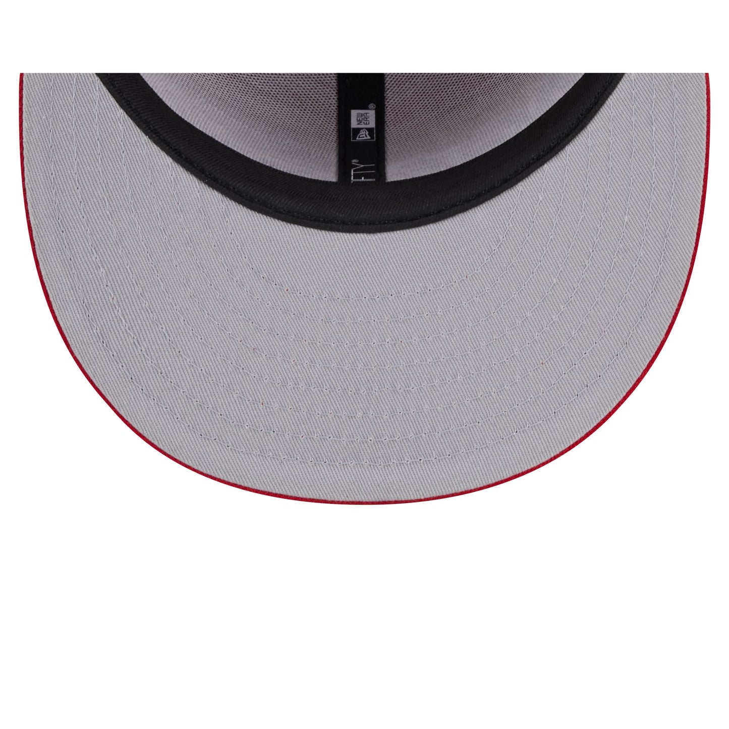 The Washington Nationals Wordmark 9FIFTY Snapback features an embroidered Nationals wordmark at the front panels with a matching team logo at the right-wear side, a gray undervisor, and a snapback closure at the rear.