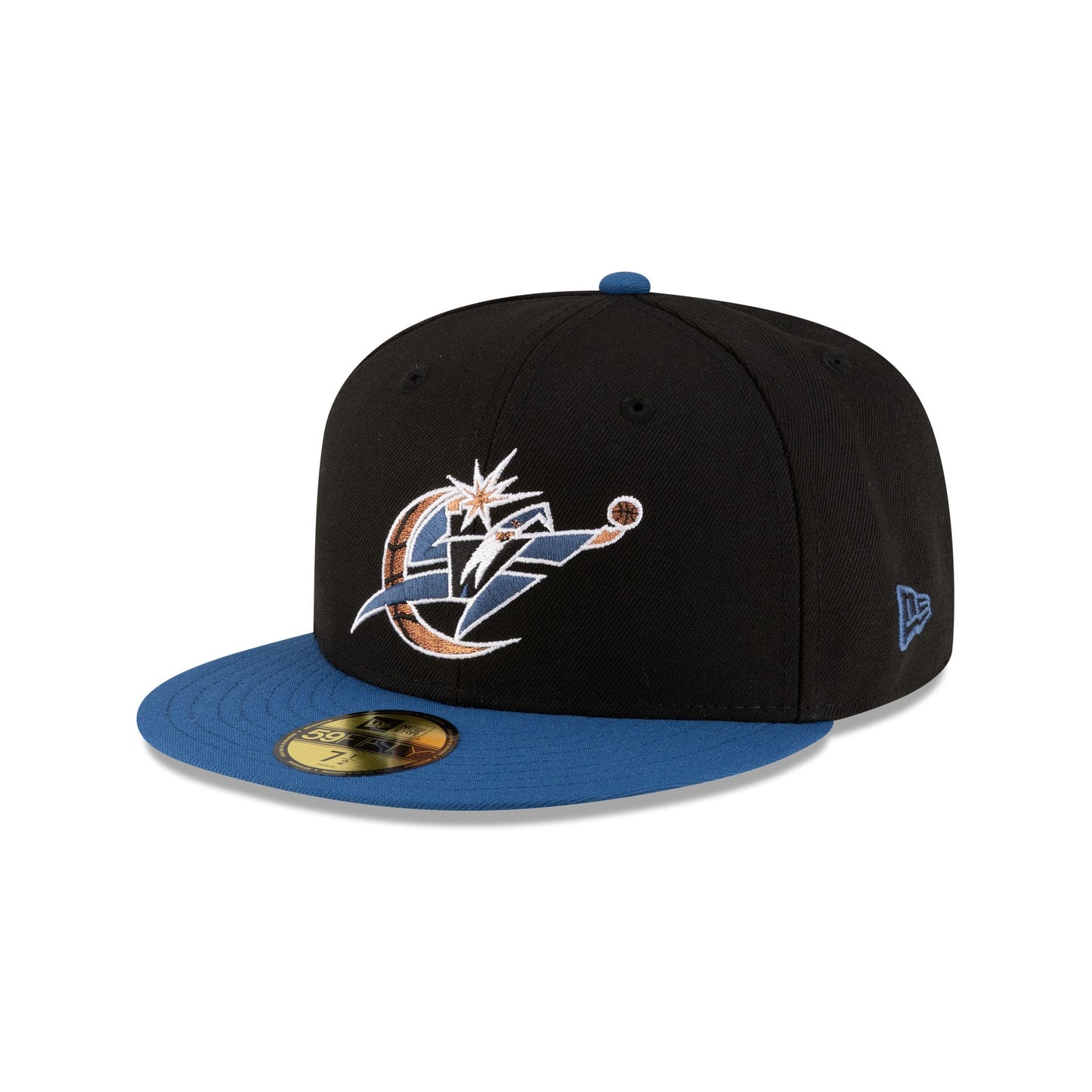 The Washington Wizards 1997-2011 Hardwood Classics Black 59FIFTY Fitted Cap features an embroidered Wizards 1997-2011 Hardwood Classics logo at the front panels with a banner patch at the right-wear side. Additional details include the NBA Logoman at the rear and a gray undervisor.