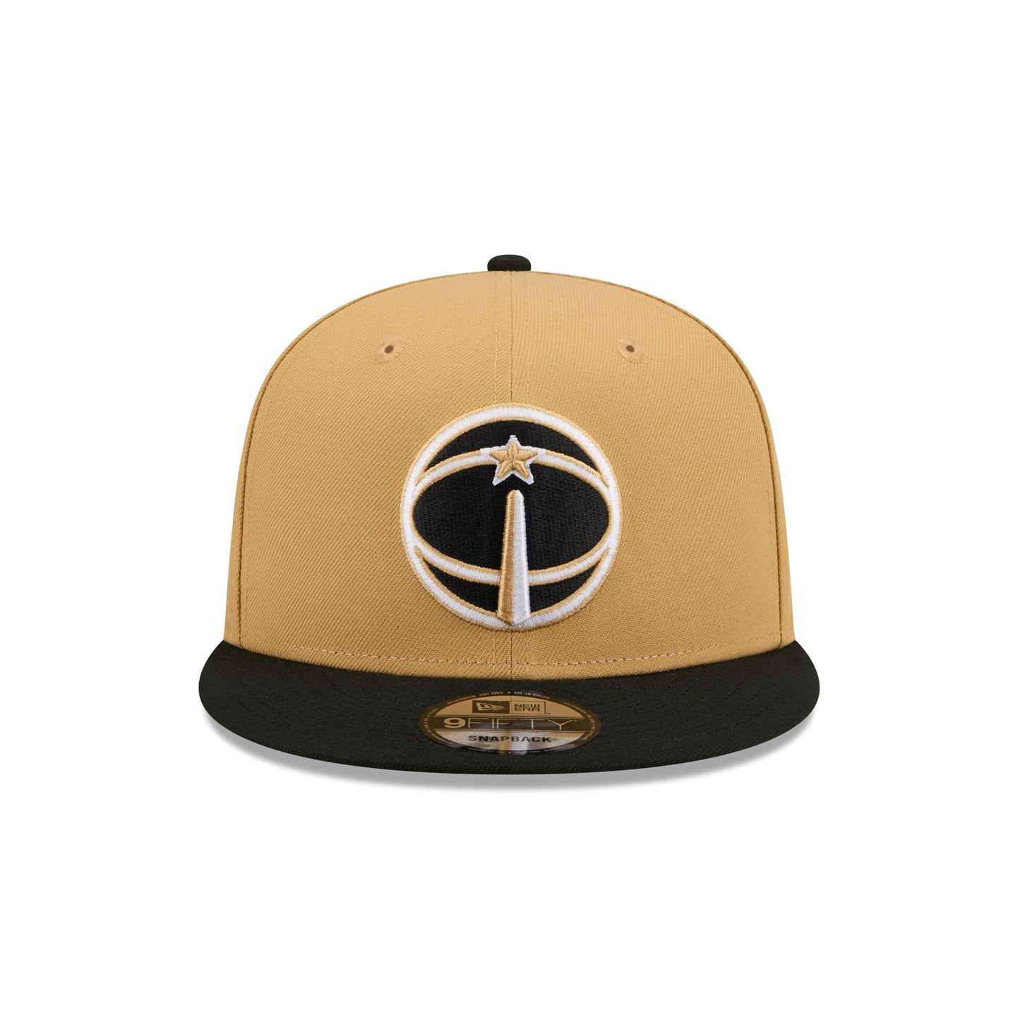 The Washington Wizards 2025 City Edition 9FIFTY Snapback features an embroidered Wizards City Edition logo at the front panels with a logo at the right-wear side. Additional details include the NBA Logoman above an adjustable snapback closure at the rear and a gray undervisor.