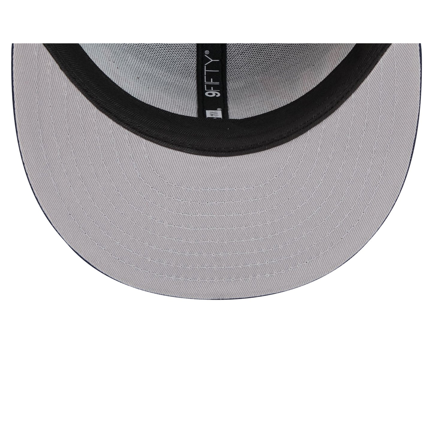 The Washington Wizards Kids 9FIFTY Snapback Hat features an embroidered Wizards wordmark at the front panels with a matching team logo at the right-wear side. Additional details include a gray undervisor and a snapback closure at the rear.