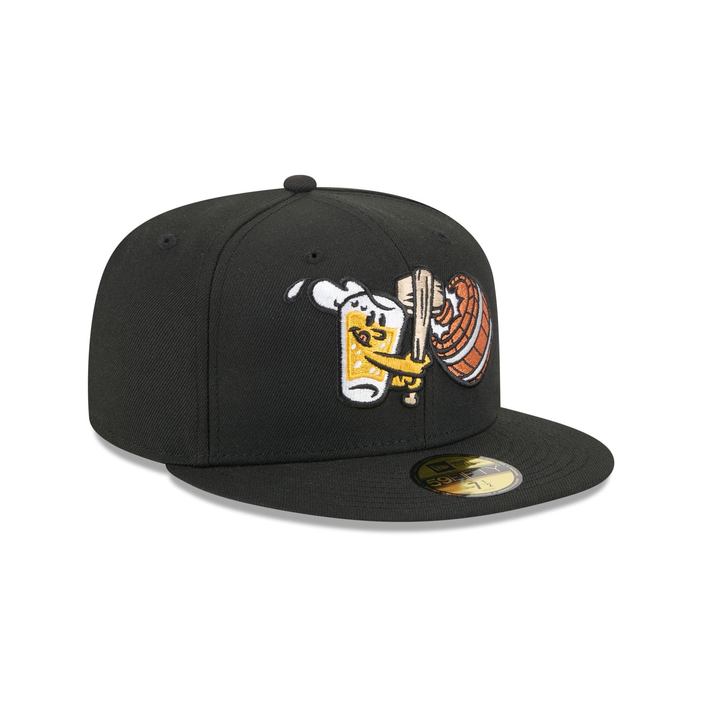 The West Michigan Whitecaps Theme Night 59FIFTY Fitted Cap features an embroidered Whitecaps theme night logo at the front panels with a matching MiLB Batterman logo at the rear and a gray undervisor.