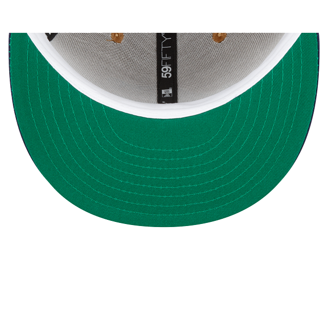 The West Michigan Whitecaps Wheat 59FIFTY Fitted Cap features an embroidered Whitecaps logo at the front panels with a matching MiLB Batterman logo at the rear. Additional details include a 2014 All-Star Classic patch at the right-wear side and a green undervisor.