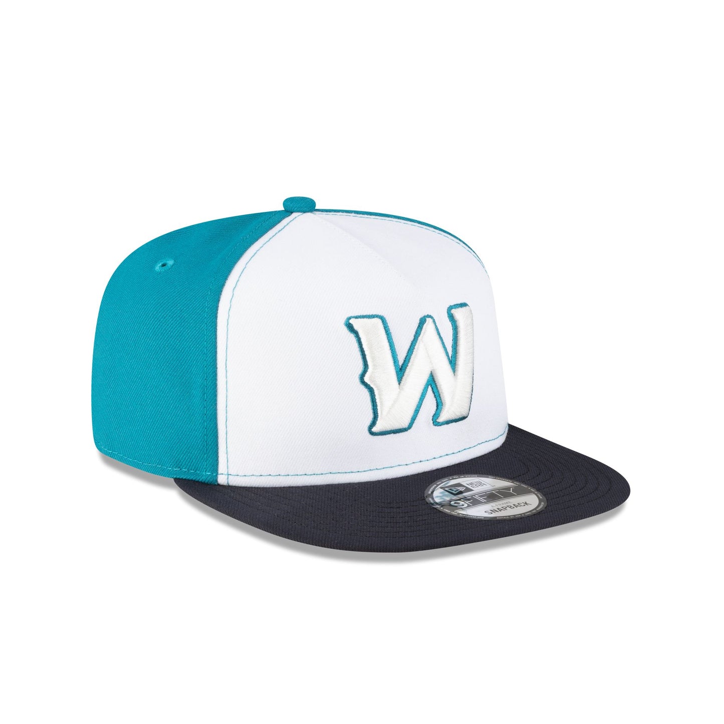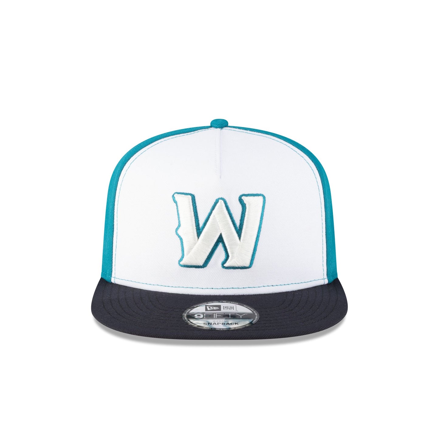The Wilson Warbirds 9FIFTY A-Frame Snapback features an embroidered Warbirds logo at the front panel with team color paneled crown, a snapback closure at the rear, and a gray undervisor.