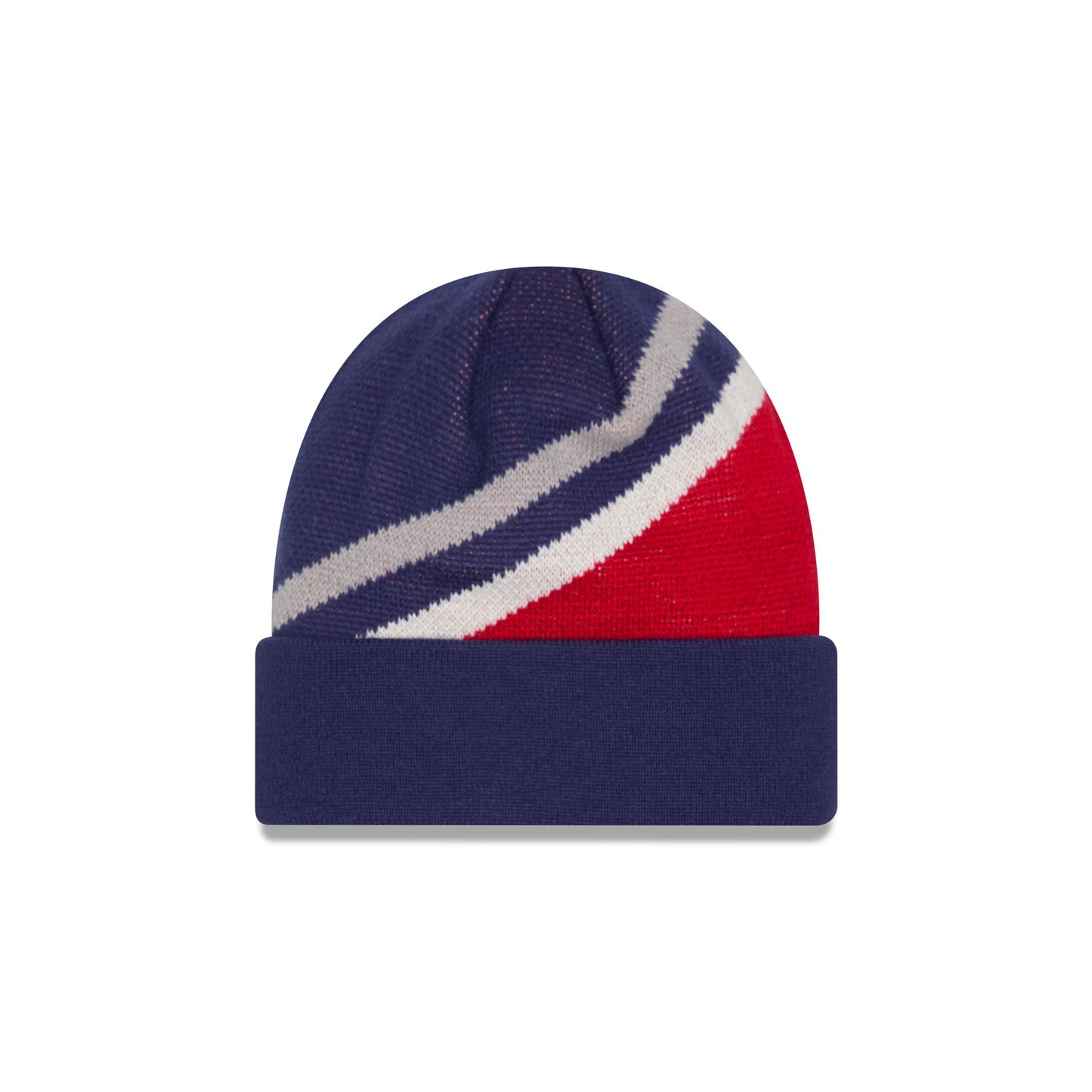 The Winnipeg Jets NHL Pack Cuff Knit features an embroidered Jets logo at the front with a New Era Flag at the left-wear side and a team color split crown.