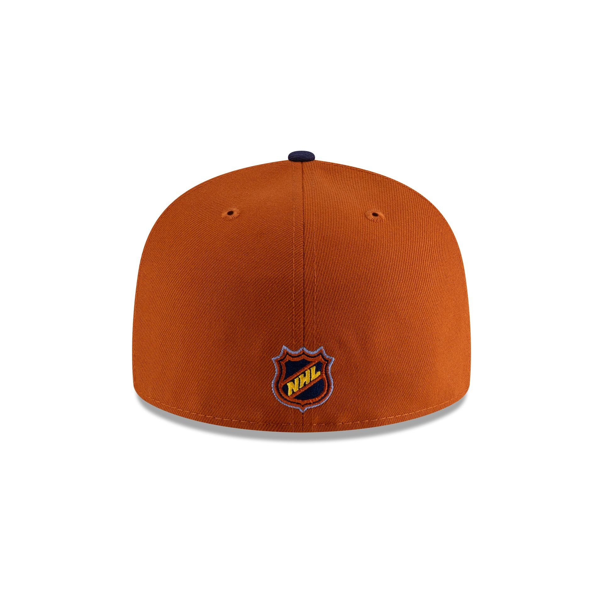 The Winnipeg Jets Winnipeg Jets Rust Navy 59FIFTY Fitted Cap features an embroidered Jets logo at the front panels with a matching NHL Shield at the rear and a gray undervisor.
