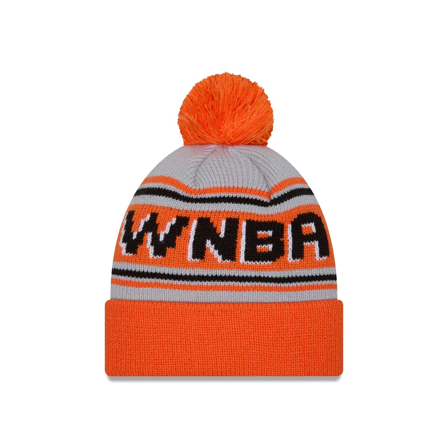 The WNBA 2024 Team Pom Knit features a WNBA logo at the brim with a team wordmark at the crown and a one-time removable pom.
