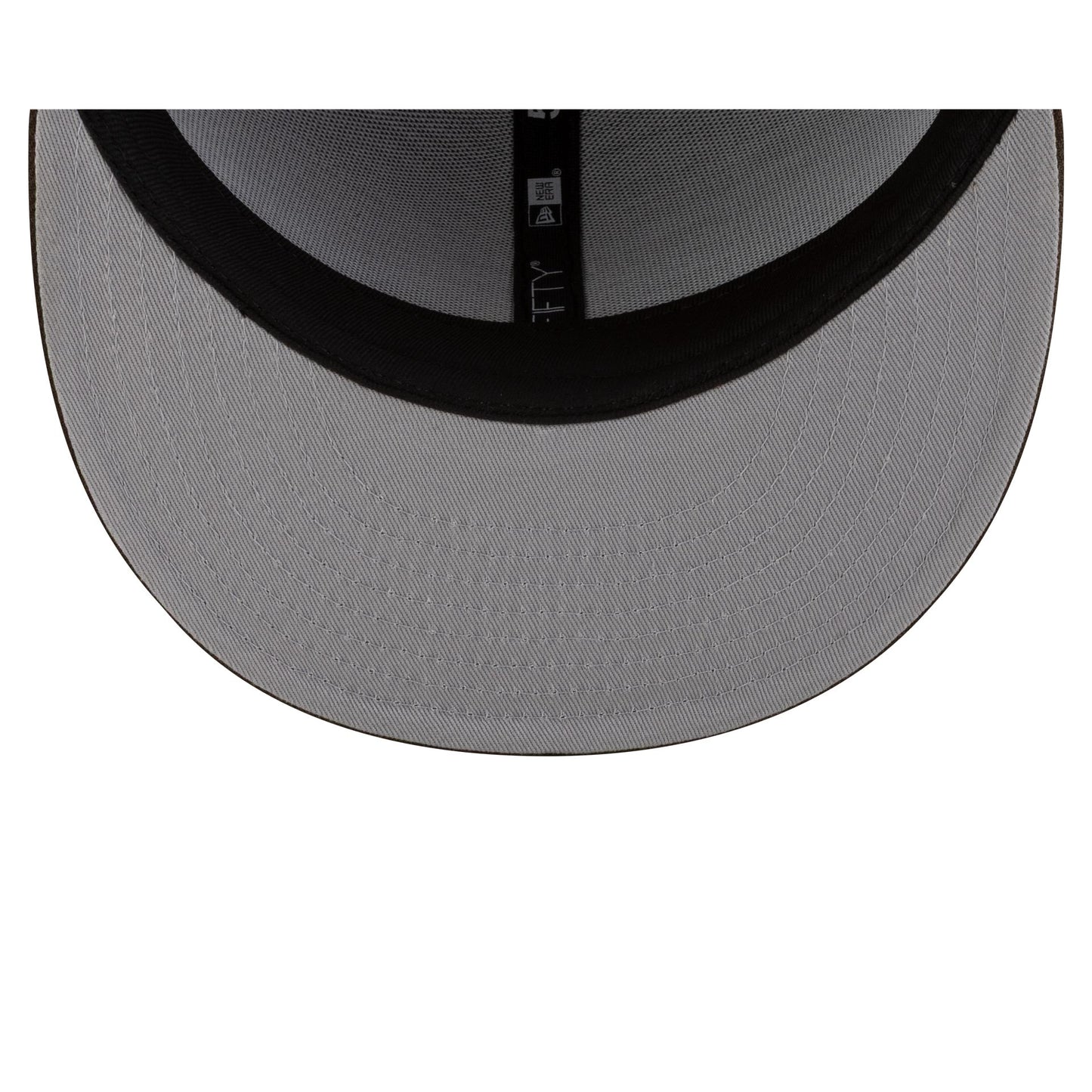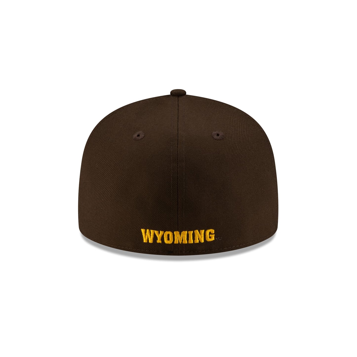 The Wyoming Cowboys 59FIFTY Fitted Cap features an embroidered Cowboys logo at the front panels with a wordmark at the rear and a gray undervisor.