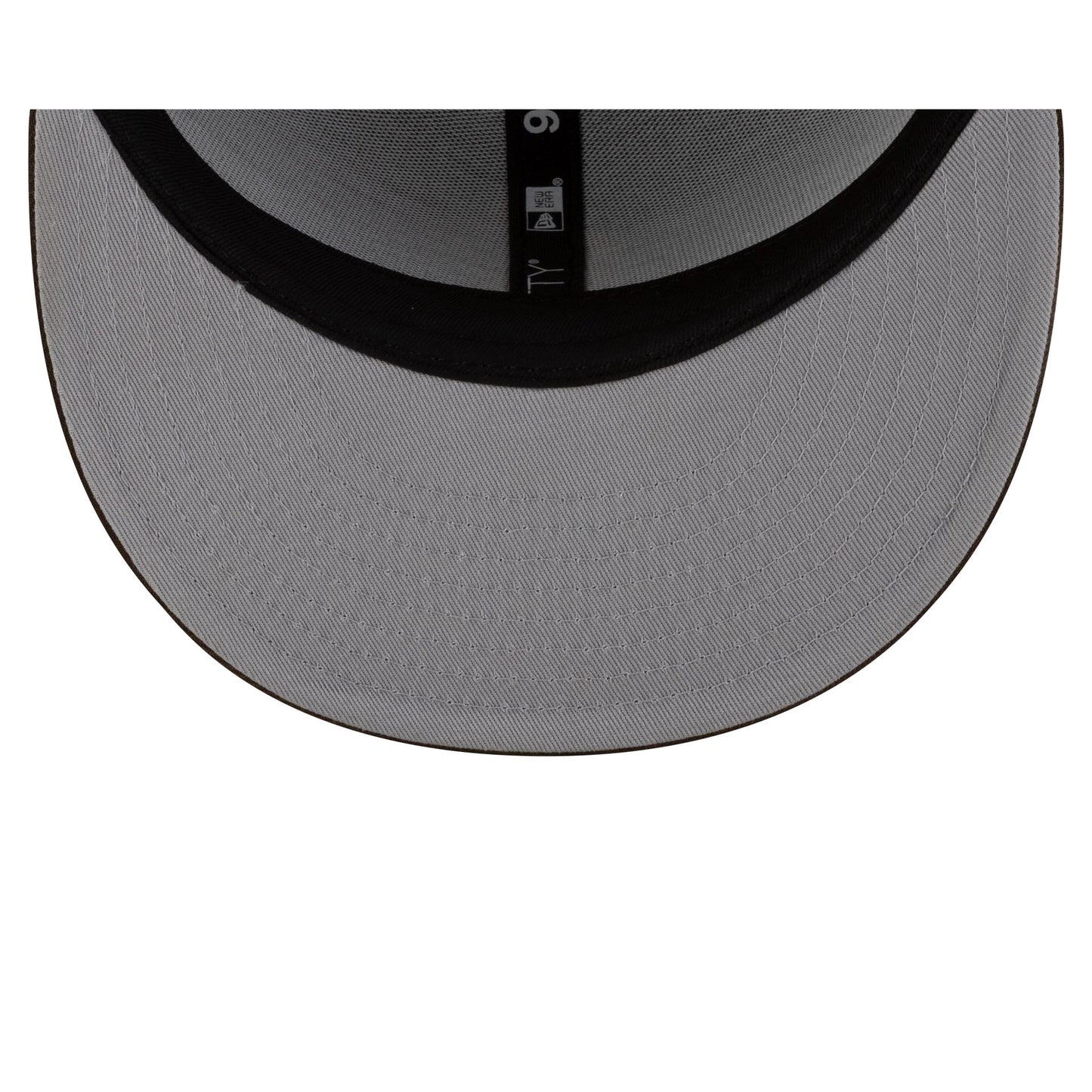 The Wyoming Cowboys 9FIFTY Snapback features an embroidered Cowboys logo at the front panels with an adjustable snapback closure at the rear and a gray undervisor.