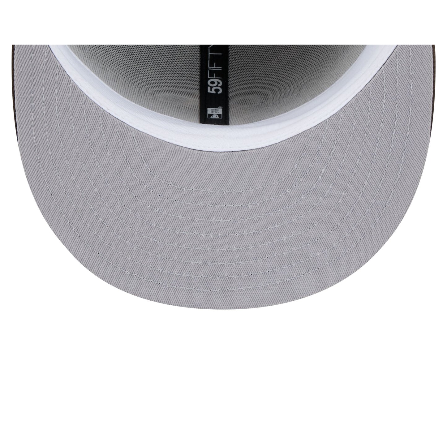 The Wyoming Cowboys Go-To 59FIFTY Fitted Cap features an embroidered Cowboys logo at the front panels with a matching team wordmark at the rear and a gray undervisor.