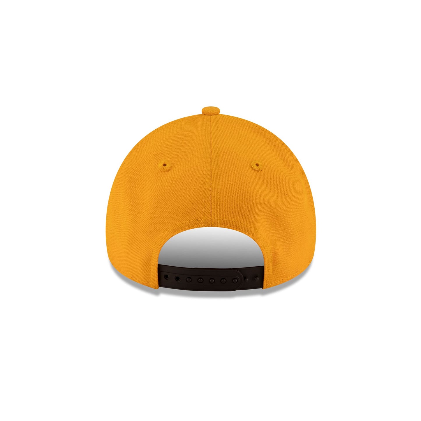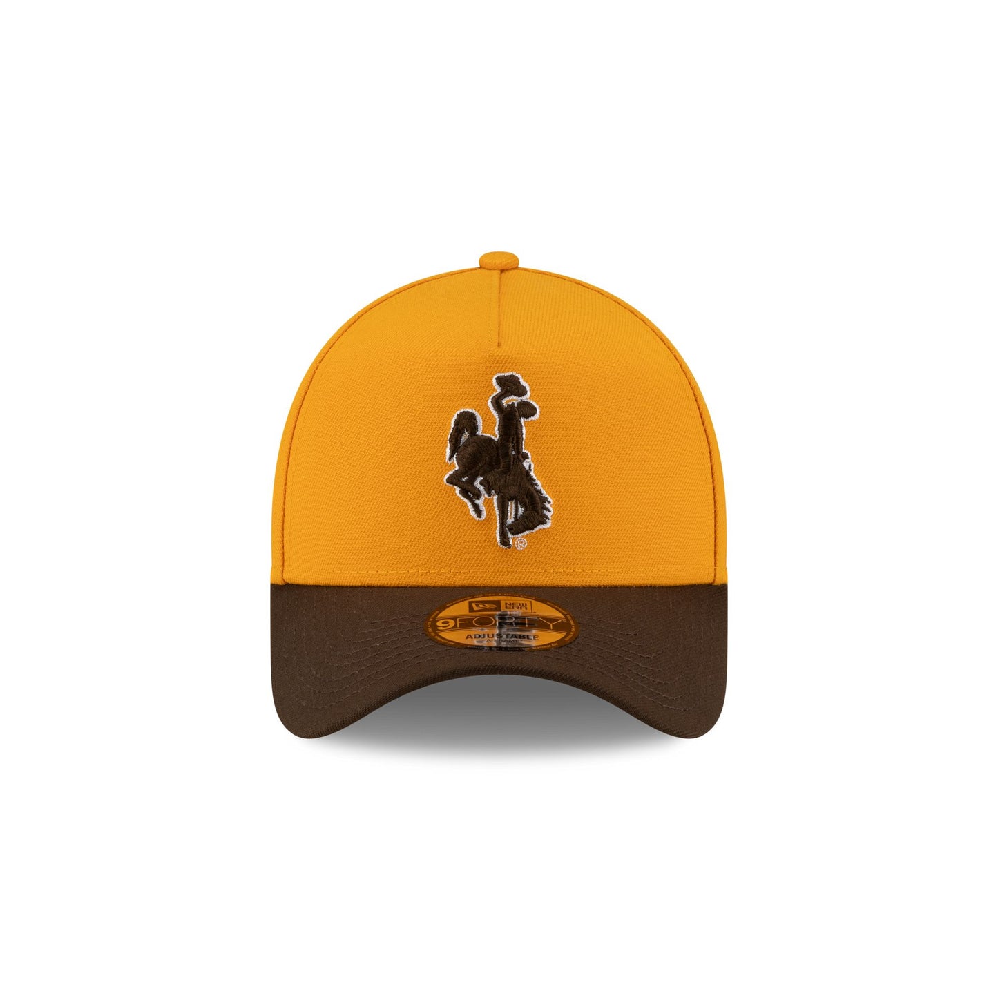 The Wyoming Cowboys Gold 9FORTY A-Frame Snapback features an embroidered Cowboys logo at the front panels with an adjustable snapback closure at the rear and a gray undervisor.