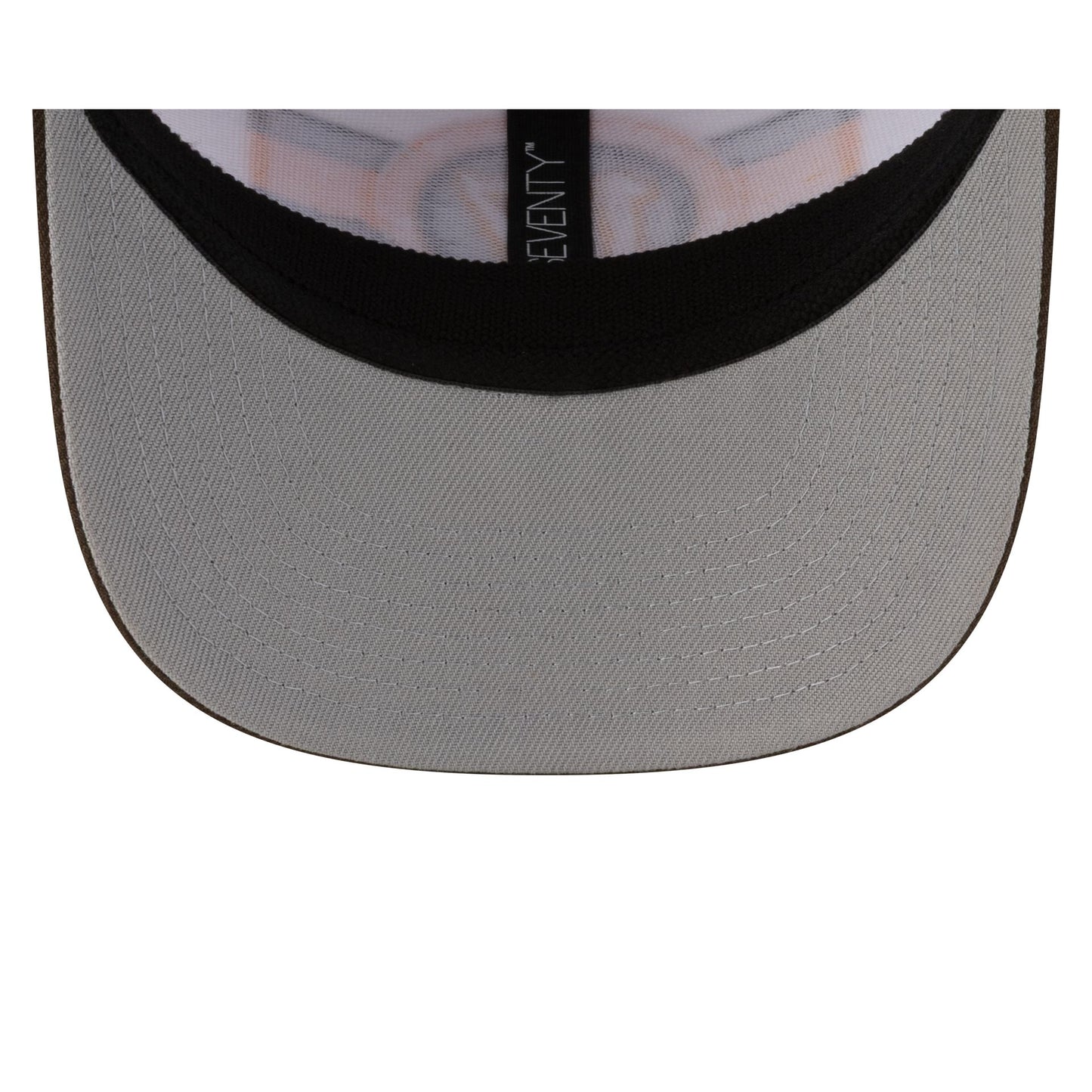 The Wyoming Cowboys Josh Allen Jersey Retirement 17 9SEVENTY Stretch-Snap features an embroidered Cowboys 17 circle graphic at the front panels with an adjustable stretch-snap closure at the rear and a gray undervisor.