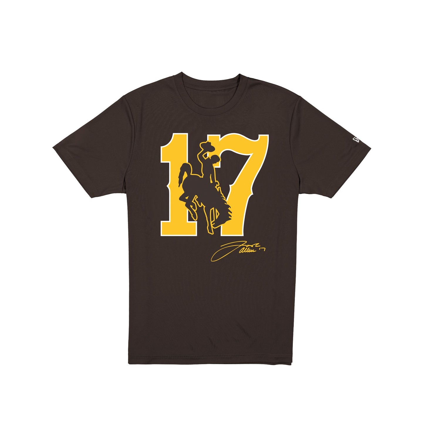 The Wyoming Cowboys Josh Allen Jersey Retirement 17 T-Shirt features a screen-printed Cowboys 17 graphic at the front with Josh Allen's signature below.