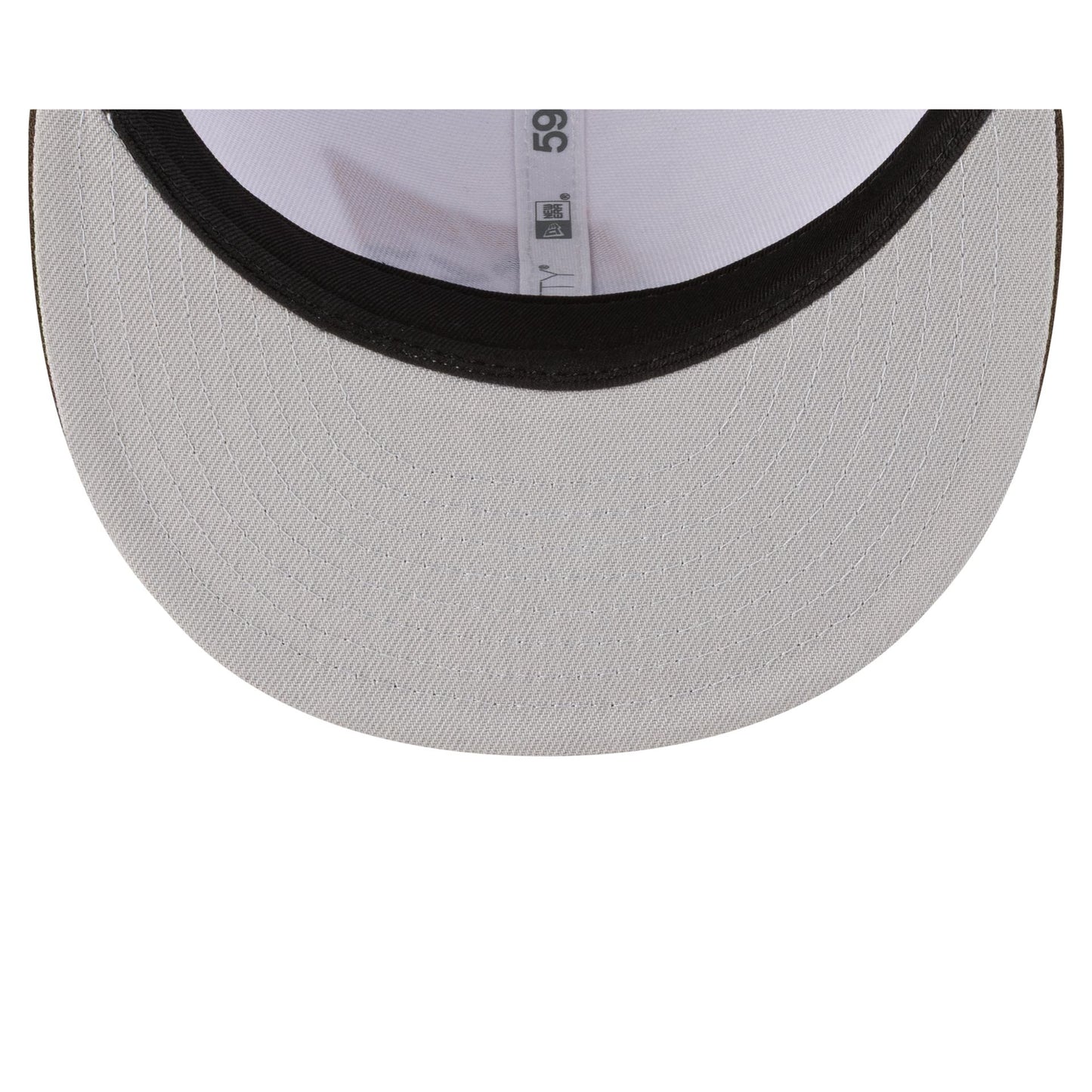 The Wyoming Cowboys Josh Allen Jersey Retirement JA17 59FIFTY Fitted Cap features an embroidered Cowboys Josh Allen JA17 graphic at the front panels with a Cowboys logo at the right-wear side and a gray undervisor.