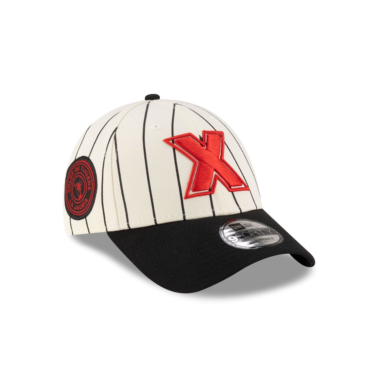 The Xolos Retro Pinstripe 9FORTY Snapback features an embroidered Xolos logo at the front panels with an alternate team logo patch at the right-wear side and an adjustable snapback closure at the rear.