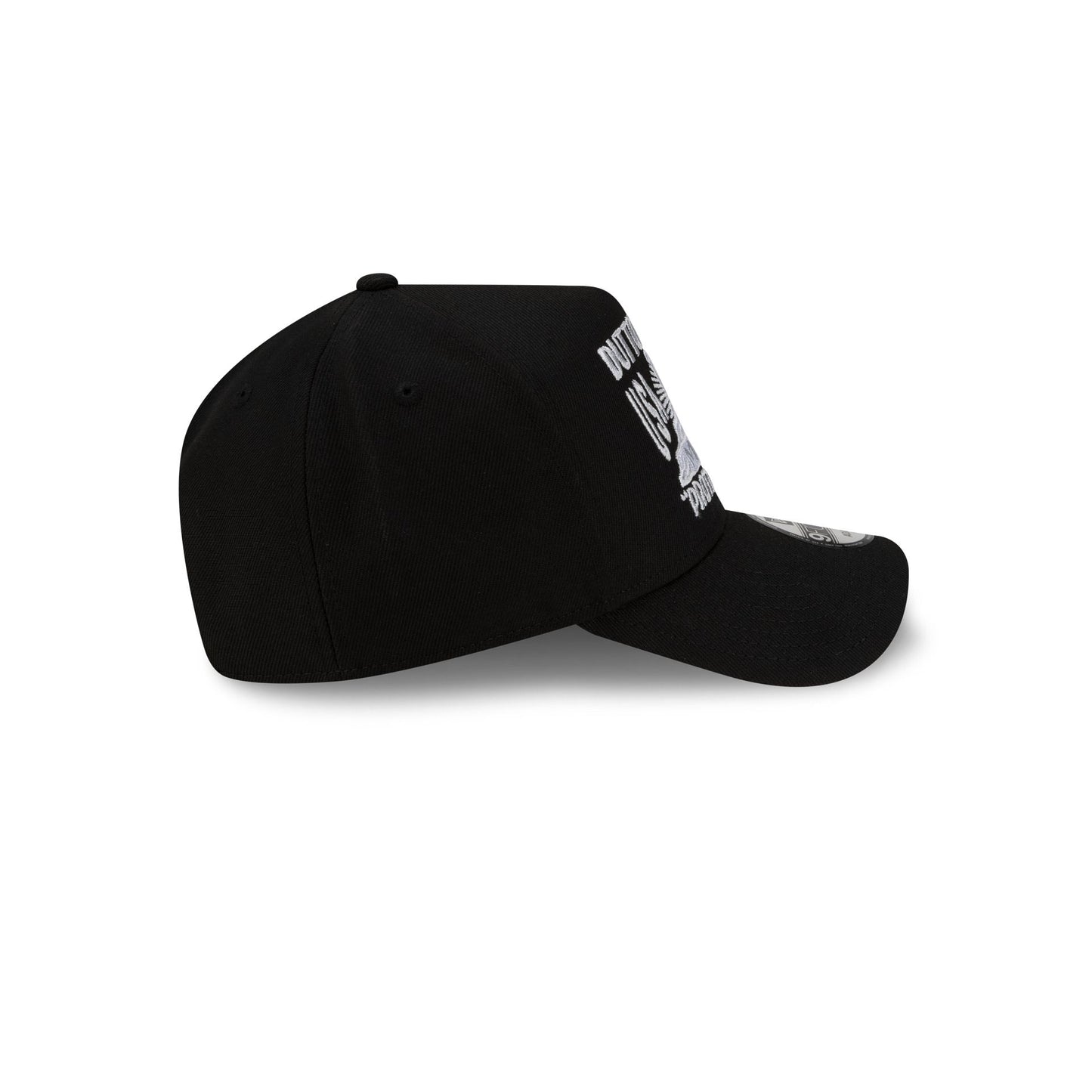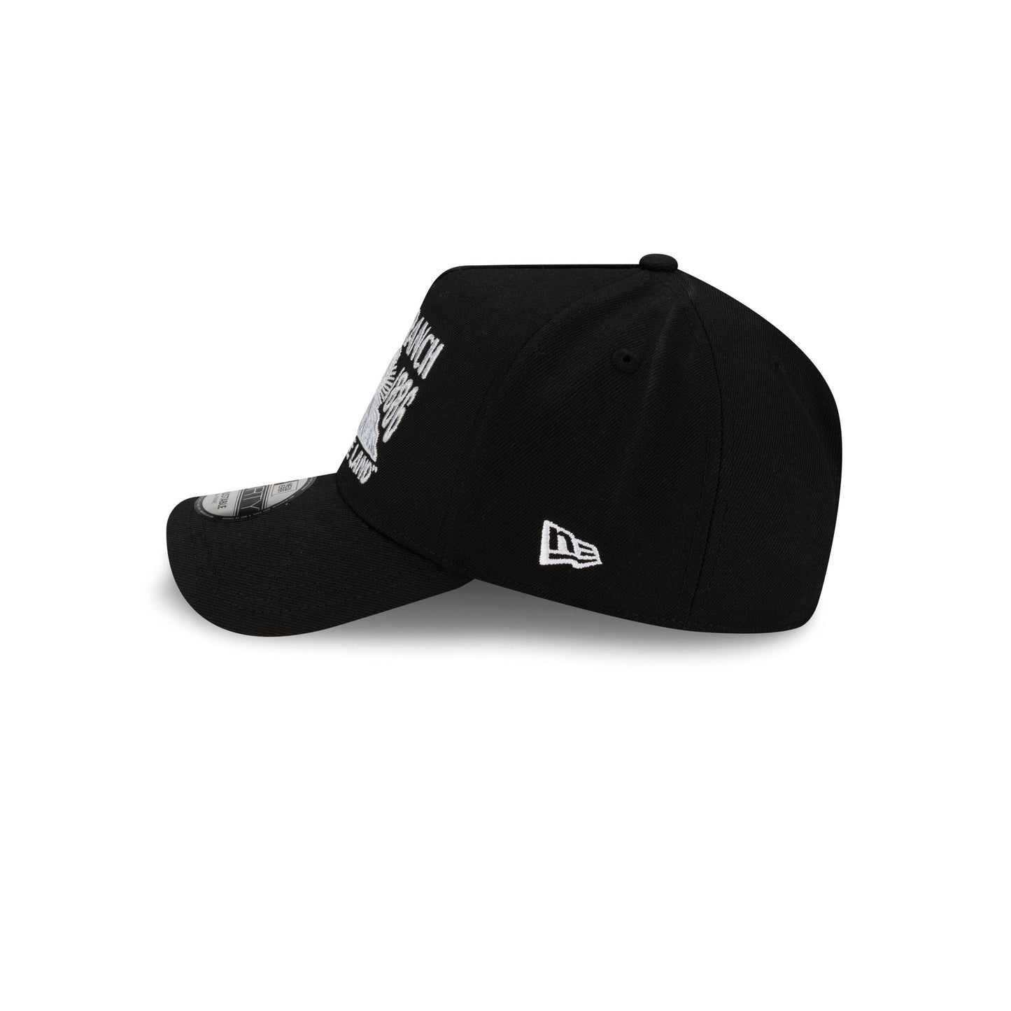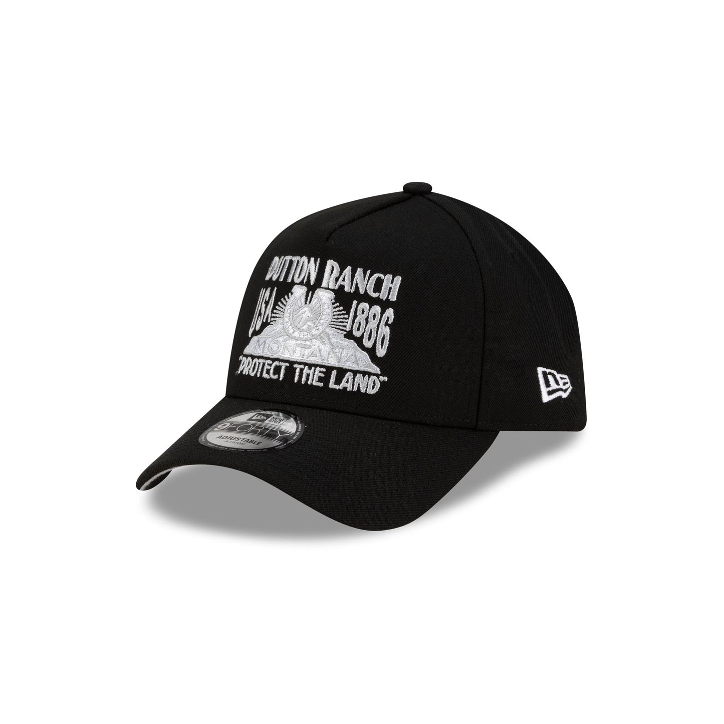 The Yellowstone Black & White 9FORTY A-Frame Snapback features an embroidered Yellowstone Dutton Ranch graphic at the front with an adjustable snapback closure at the rear and a gray undervisor.