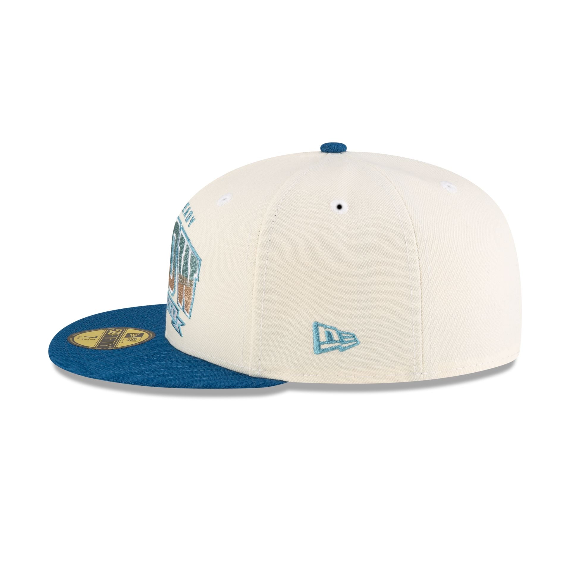 The You Already Shnow University Chrome 59FIFTY Fitted Cap features an embroidered Shnow University wordmark at the front panels with an Every Day We Shoveling patch at the right-wear side. Additional details include a Buffalo at the rear and a blue undervisor.