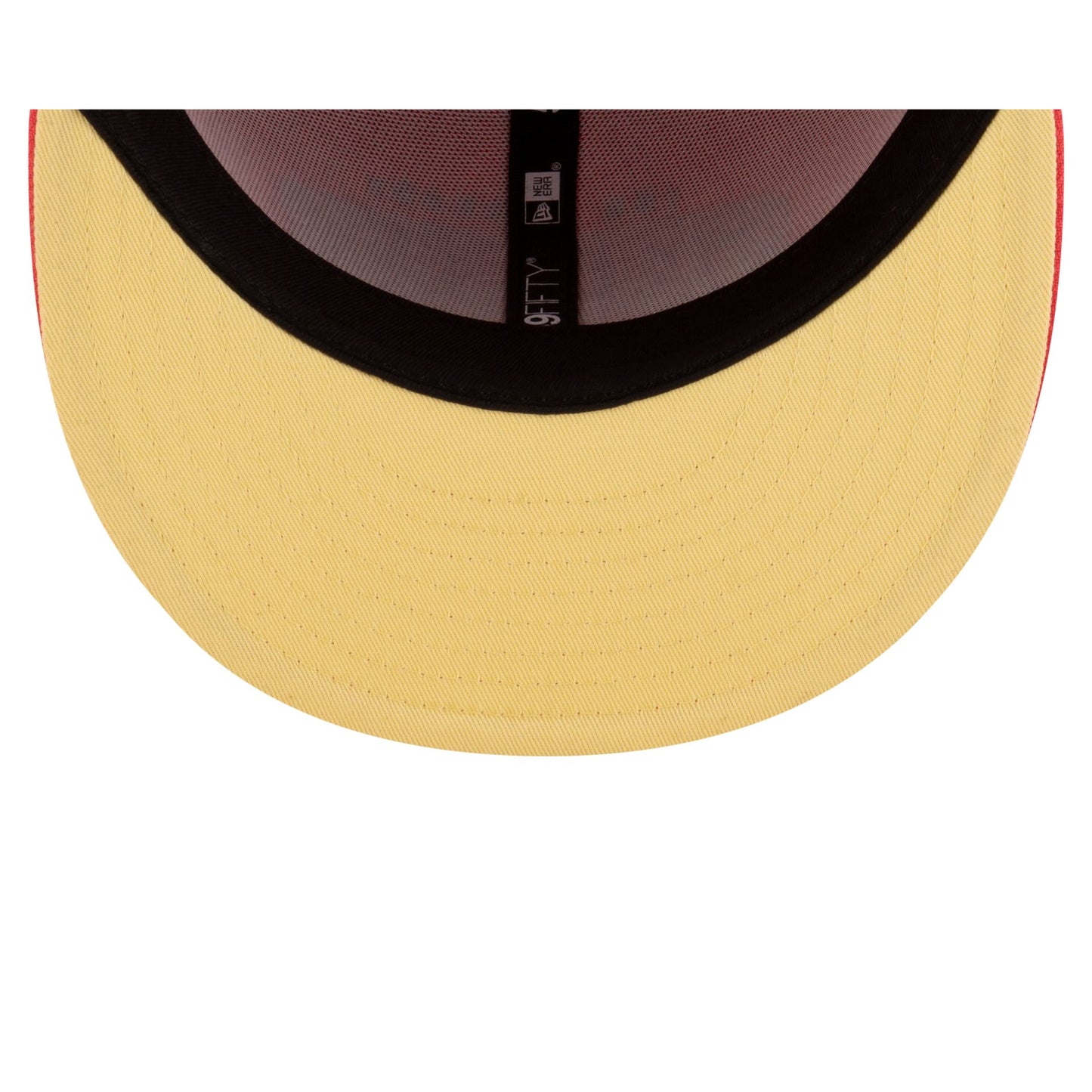 The You Already Shnow University Red 59FIFTY Fitted Cap features an embroidered Shnow University wordmark at the front panels with an Every Day We Shoveling patch at the right-wear side. Additional details include a Buffalo at the rear and a yellow undervisor.