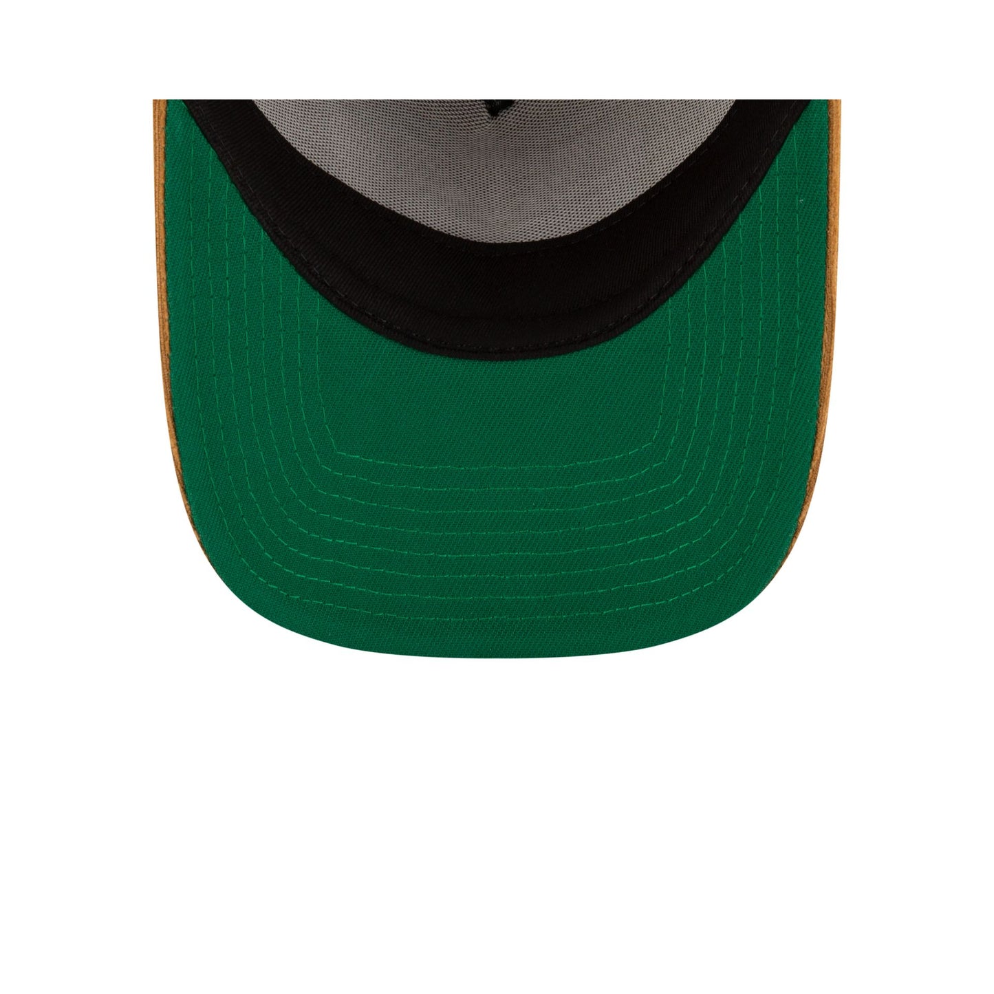 The You Already Shnow University Wheat Cord 9FORTY A-Frame Snapback features an embroidered Shnow University wordmark at the front panels with a Buffalo above a snapback closure at the rear and a green undervisor.